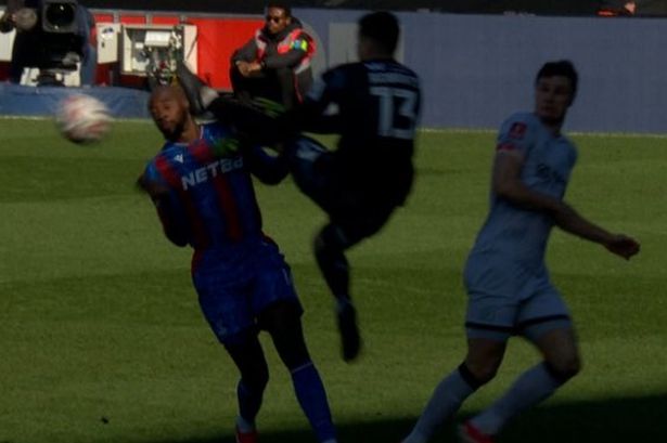 El árbitro Michael Oliver inicialmente permitió que el juego continuara con el Palace aún al ataque, pero una vez que el disparo fue despejado, detuvo el juego.
